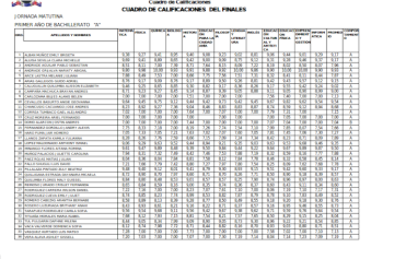 Cuadros de calificaciones