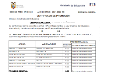 Promociones, de Matriculas, de acuerdo a la LOEI.